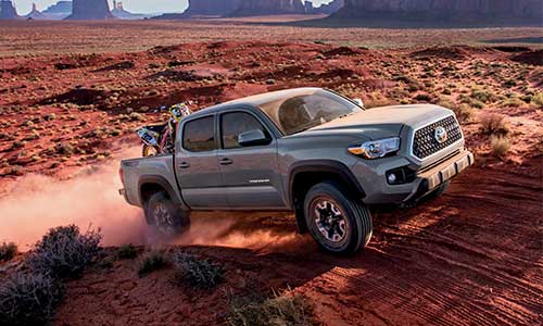 The Toyota Tacoma is a truck that's ready to perform. Whether you're on the road or off, there's a Tacoma option for you. With multiple engine options, you can pick the right amount of power for your needs. You'll also have the option to choose between a manual or automatic transmission. With the base 2.7-liter engine, you'll be able to generate 180 pound-feet of torque. Or opt for the V6 and generate 265 pound-feet of torque. With the Toyota Tacoma you'll be able to tow up to 6,800 pounds with the V6 Tow package. That means you can get the job done right the first time.