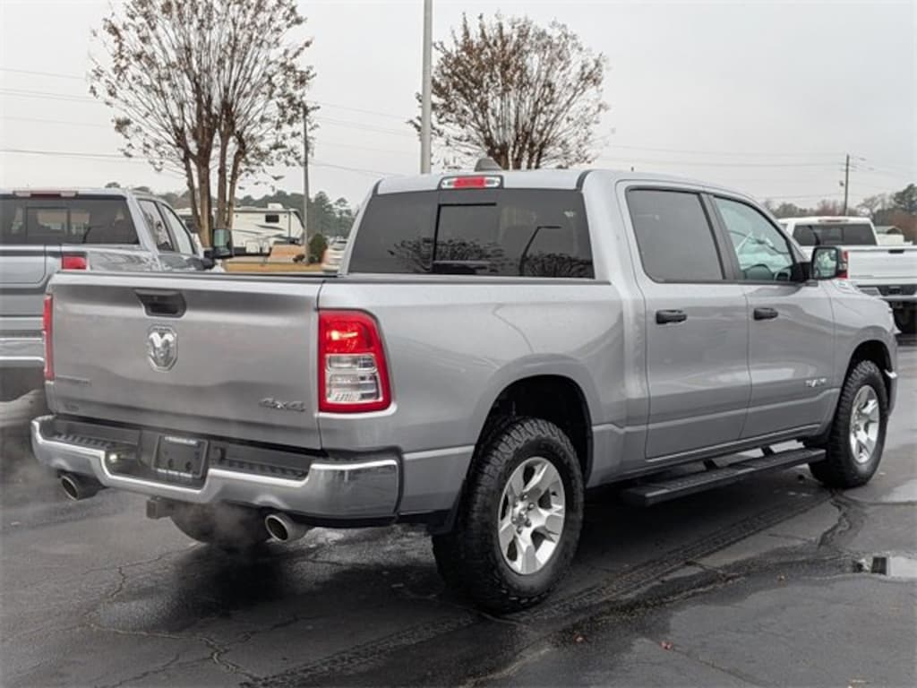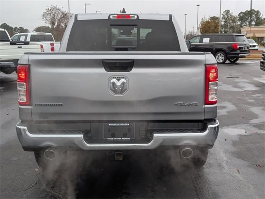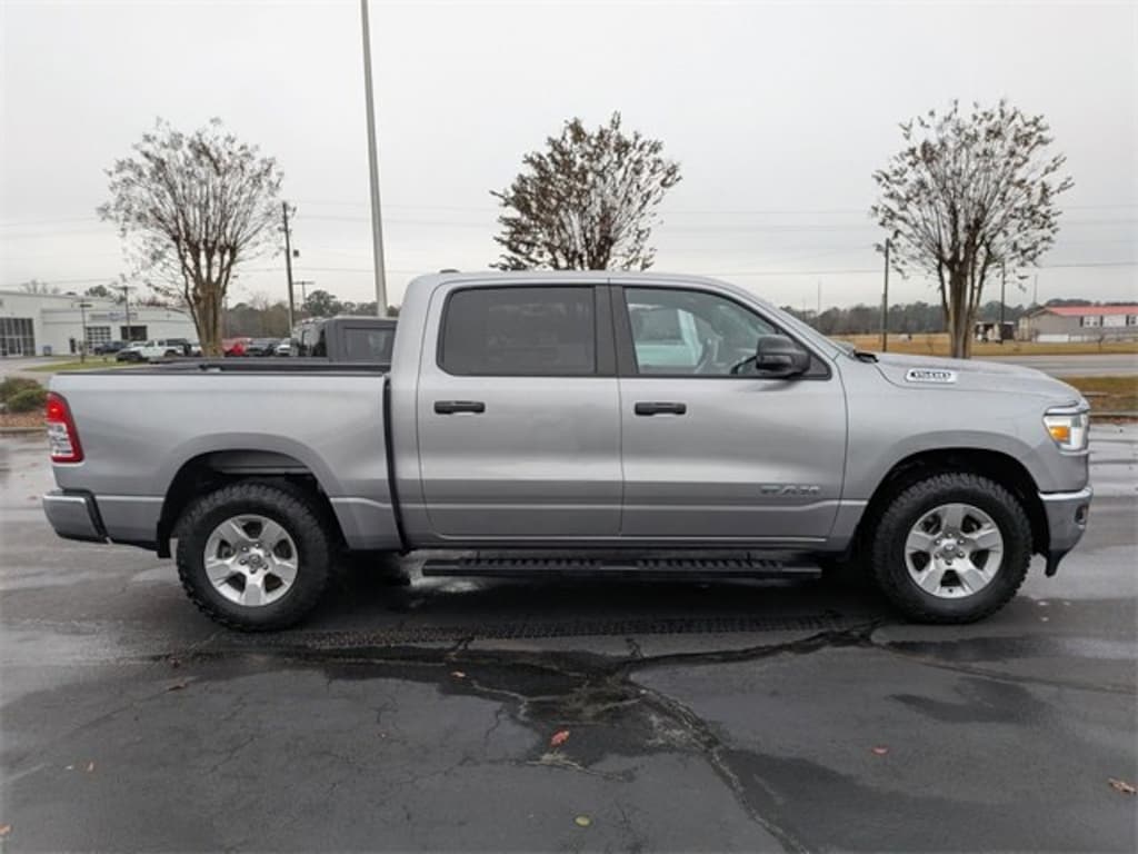 2nd Row In Floor Storage Bins, 3 Rear Seat Head Restraints, 3.21 Rear Axle Ratio, 4 Way Front Headrests, 4-Wheel Disc Brakes, 48V Belt Starter Generator, 4G LTE Wi-Fi Hot Spot, 6 Speakers, ABS brakes, Air Conditioning, Alloy wheels, AM/FM radio, Apple CarPlay, Auto-Dimming Exterior Driver Mirror, Auto-Dimming Rear-View Mirror, Big Horn Badge, Big Horn Level 1 Equipment Group, Black Premium Power Mirrors, Bluetooth Handsfree Phone & Audio, Brake assist, Bumpers: chrome, Class IV Receiver Hitch, Cloth Bench Seat, Compass, Connectivity - US/Canada, Convex Wide-Angle Exterior Mirror Insert, Delay-off headlights, Driver door bin, Dual front impact airbags, Dual front side impact airbags, Electric Shift-On-Demand Transfer Case, Electronic Stability Control, Emergency communication system: RAM Connect, Exterior Mirrors Courtesy Lamps, Exterior Mirrors w/Heating Element, Exterior Mirrors w/Supplemental Signals, For Details, Visit DriveUconnect.com, For More Info, Call 800-643-2112, Front anti-roll bar, Front Center Armrest w/Storage, Front Fog Lamps, Front reading lights, Front Seat Back Map Pockets, Front wheel independent suspension, Fully automatic headlights, Global Telematics Box Module (TBM), Glove Box Lamp, Google Android Auto, Heated door mirrors, Heated Front Seats, Heated Steering Wheel, Illuminated entry, Integrated Voice Command w/Bluetooth, Leather steering wheel, Low tire pressure warning, MOPAR Front & Rear Rubber Floor Mats, Occupant sensing airbag, Outside temperature display, Overhead airbag, Overhead console, Panic alarm, ParkView Rear Back-Up Camera, Passenger door bin, Passenger Sun Visor w/Illuminated Mirror, Passenger vanity mirror, Power door mirrors, Power steering, Power windows, Power-Folding Mirrors, Quick Order Package 27Z Big Horn, Radio data system, Radio: Uconnect 3 w/5" Display, Radio: Uconnect 5 W w/8.4" Display, RAM Grille Badge - Chrome, Rear 60/40 Folding Seat, Rear anti-roll bar, Rear Dome w/On/Off Switch Lamp, Rear Power Sliding Window, Rear seat center armrest, Rear step bumper, Rear Window Defroster, Remote keyless entry, Remote Start System, SiriusXM Radio Service, SiriusXM Satellite Radio, Speed control, Split folding rear seat, Steering wheel mounted audio controls, Tachometer, Telescoping steering wheel, Tilt steering wheel, Traction control, Trailer Brake Control, Trip computer, USB Host Flip, Variably intermittent wipers, Voltmeter, Wheels: 18" x 8" Cast-Aluminum Painted.